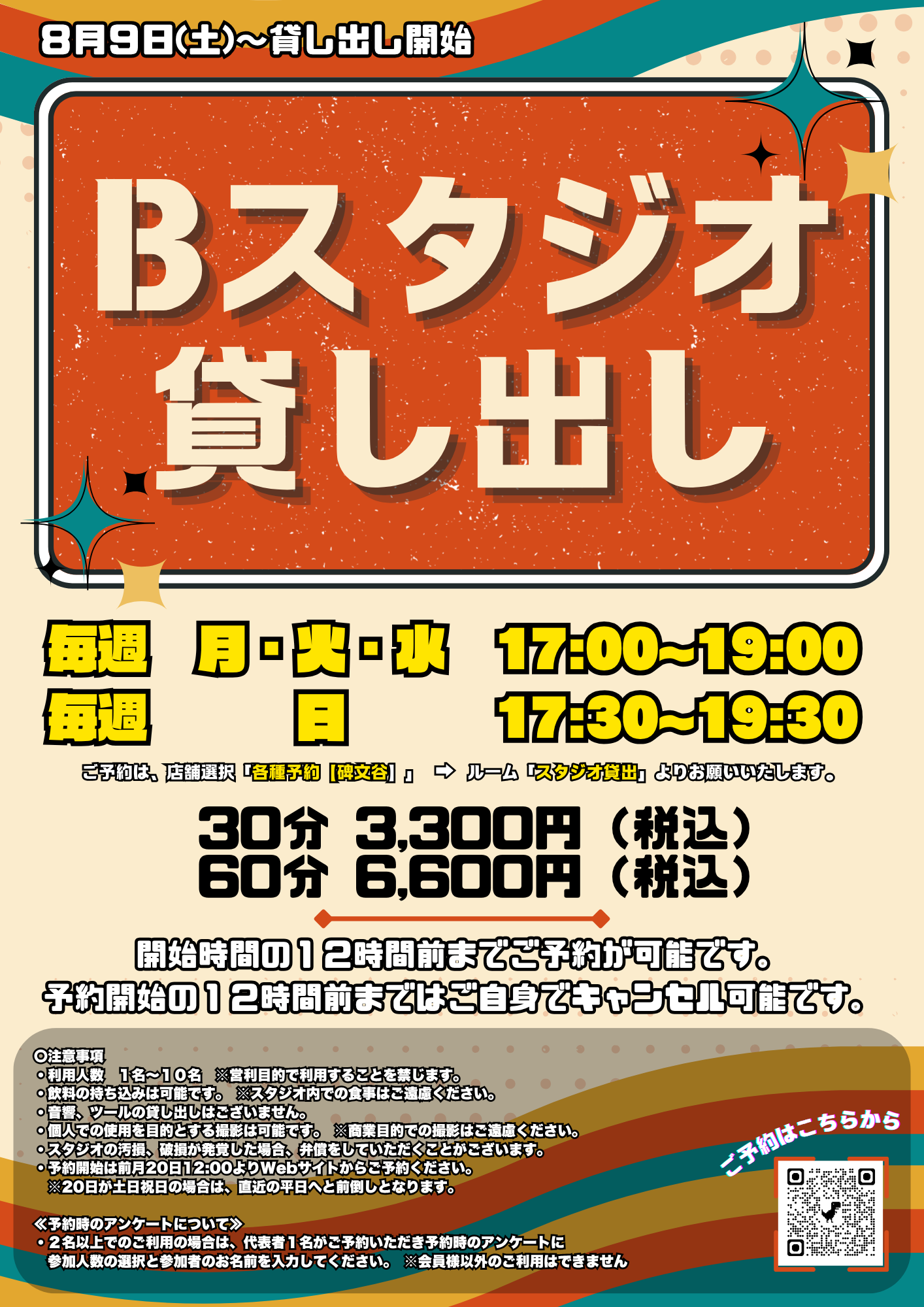 Bスタジオ貸出サービス開始のお知らせ