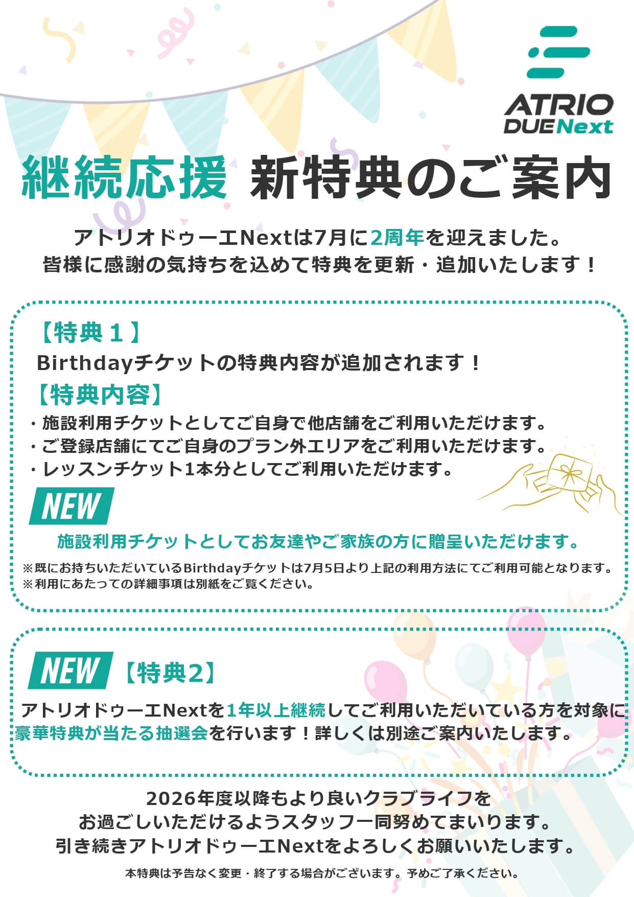 継続応援 新特典のご案内