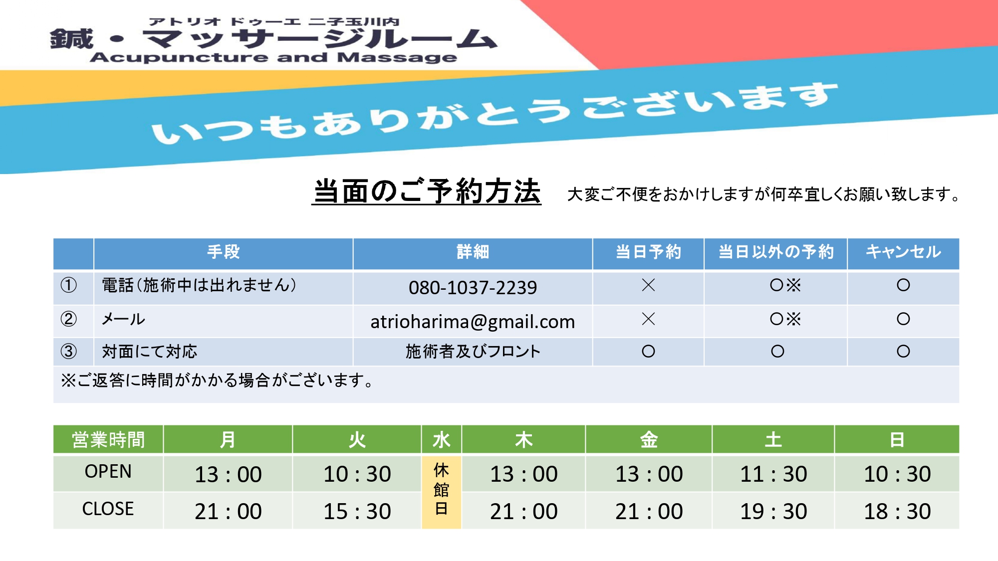 12月1日(水)より、マッサージルーム予約方法が変更致します。