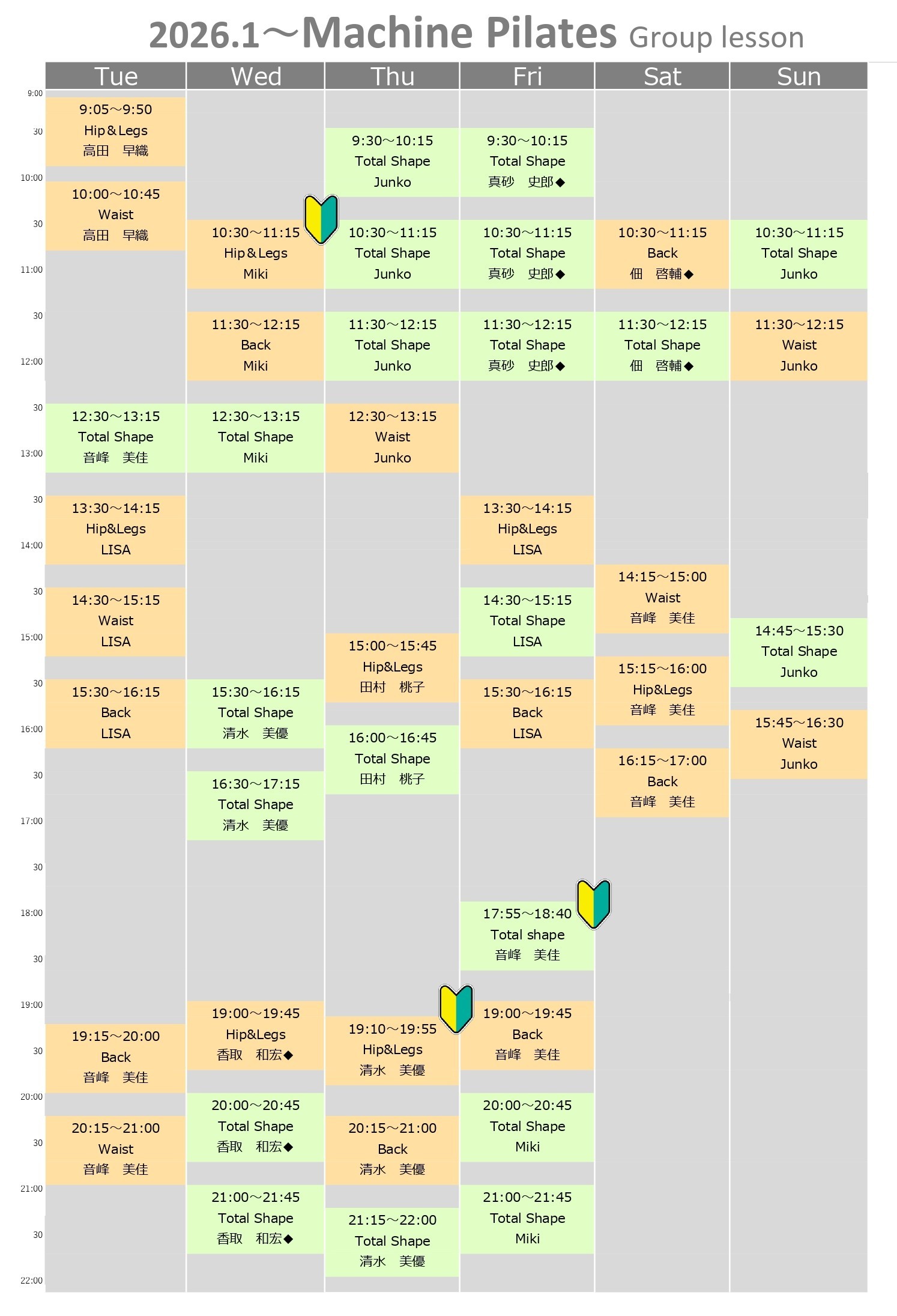 ♦マークは男性インストラクターです