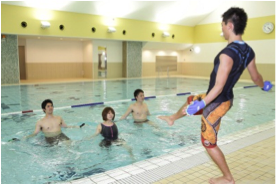 ウォーキング、ダンス、ヌードル(浮き棒)などの様々なエクササイズを楽しみます。