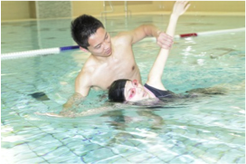 ミット(水中手袋)を使用し、水の抵抗、浮力を使って身体を動かします。バランス能力や身体能力の改善を目指します。