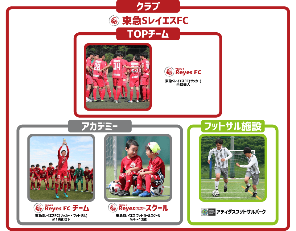 東急SレイエスFCアカデミーは、フットボールに関する育成機関の総称で、18歳以下のチーム・スクールを括るものです。