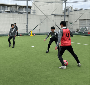 数的不均衡において、攻撃は、どのような手段で守備ラインを越えていくか、また守備は、どのように限定して守備ラインを越させずに数的同数に戻すか、ということについて認識を揃えました。