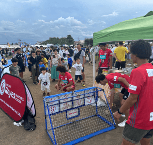 このイベントは毎月開催しており、先月は雨で中止となってしまったため、今月は土日での開催となりました!ボールチャレンジブースでは、キックターゲット、キックスピード測定、ストラックアウトを実施!ブースにはトップチームの選手たちが担当し、イベントを盛り上げました!