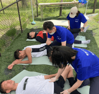 試合の合間には、青葉さわい病院様の理学療法士や管理栄養士の皆様による、体と栄養相談ブースも出店いただき、働き盛りの皆様の、心と体に寄り添いながら親身にご対応頂きました。