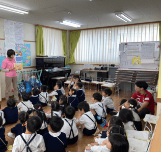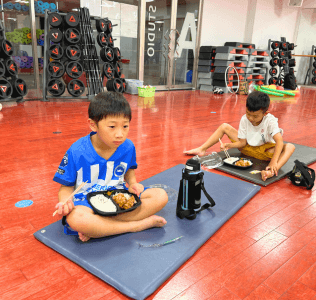 前の部では朝のオンライン学習「ASABEN」様による三苫薫選手の英語インタビューを聴く勉強会や体をたくさん動かしたレクリエーション、お昼ご飯をみんなで一緒に食べ、映画も見ましたね!