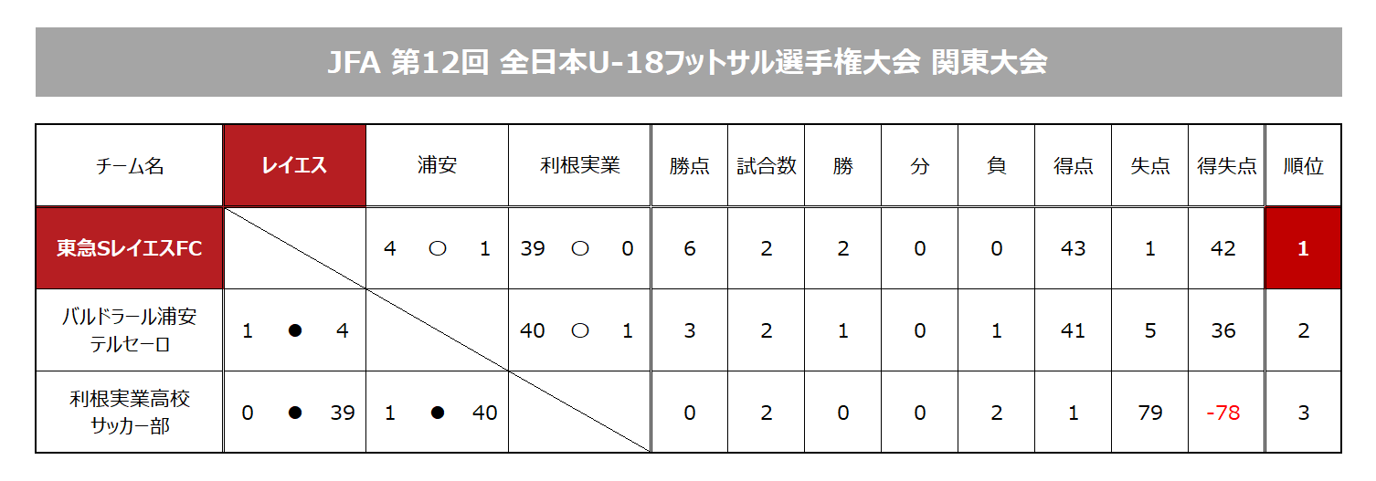 | 6月8日(日) | 第2節 | 利根実業高校サッカー部 | 39 〇 0 |