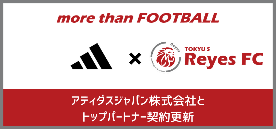 アディダスジャパン様からは長きに渡り、弊社フットボール事業を様々な面からサポートいただいております。今後につきましても、アディダスジャパン様と新たな価値を共創し、レイエスに関わる全ての皆様へ、よろこびがつなぐ世界の実現へ向け、志を共にしながら歩んで参ります。