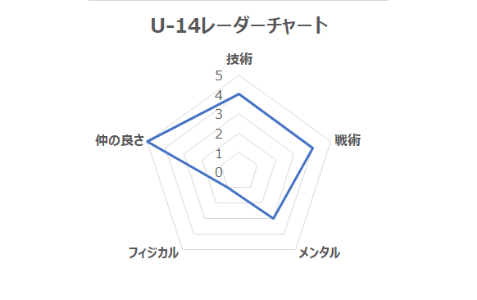 U-14(中学2年生)チームは、U-15チームが関東リーグに所属しているチームが出場できる「JリーグU-14リーグ」と中学3年生が主体となっているチーム同士で行われる「神奈川県U-15リーグ」を戦っています。