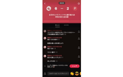 テキストにて試合速報が配信されます。試合結果や日程も一覧で閲覧可能です!