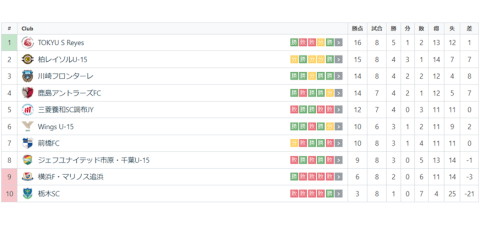 現在U-15チームは、中学生年代最高レベルである関東リーグの2部(10チームのホーム&アウェイ方式リーグ戦)を戦っています。5月8日(日)の第8節を終えて、5勝1分2敗 勝点16の暫定首位です!5月15日(日)の前期最終戦を白星で飾り、これから始まるもう1つの公式戦「クラブユース選手権関東大会」へと良い状態でつなげていきたいと思います。U-18同様、こちらも熱い応援をよろしくお願いいたします!