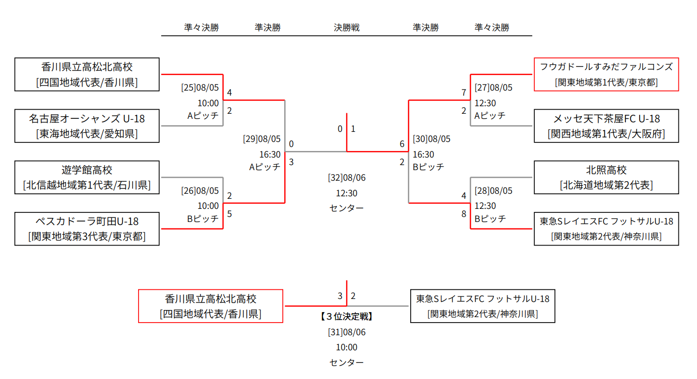 ・3位決定戦の高松北高校では、選手たちの疲労もピークになっており後半追い上げるも2-3の敗戦となってしまいました。