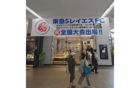 いよいよ全国大会がフットサル・サッカーカテゴリースタート致します。活動拠点である青葉区の東急田園都市線「あざみ野」駅様のご厚意で、7月31日(月)から横断幕を設置して頂いております。