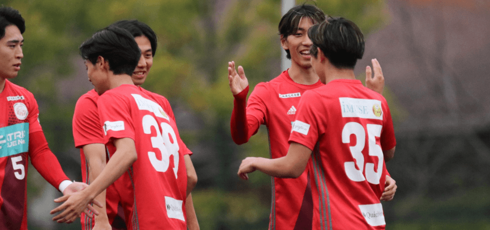 DF山越2ゴールと北野のゴールで前半に3点のリードを奪います。後半は2失点してしまいますが、苦しみながらも勝利することができました。