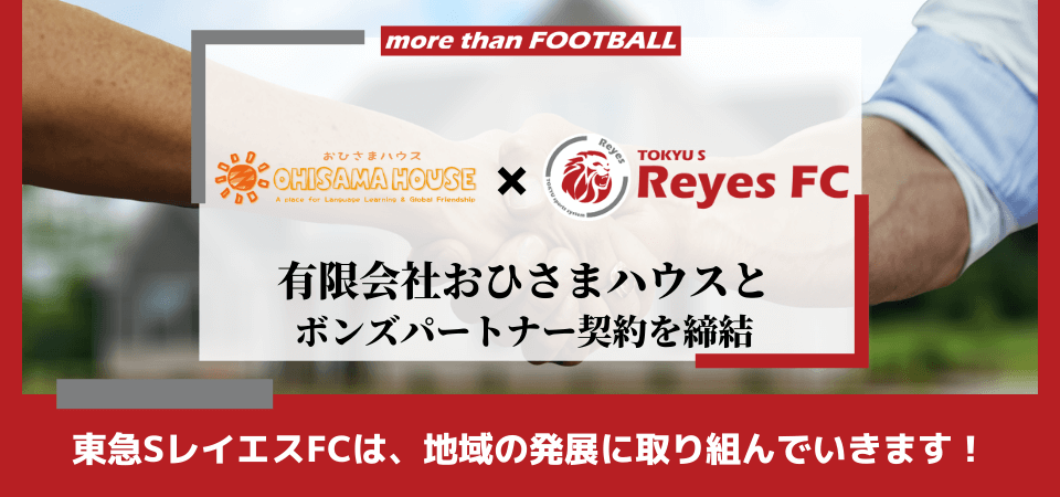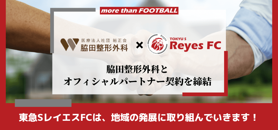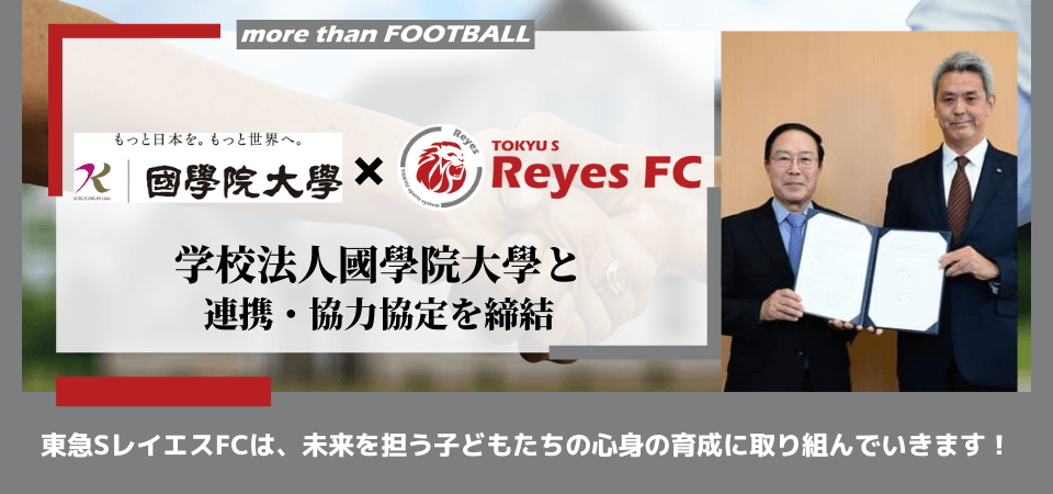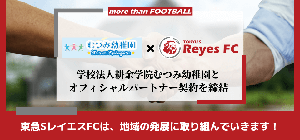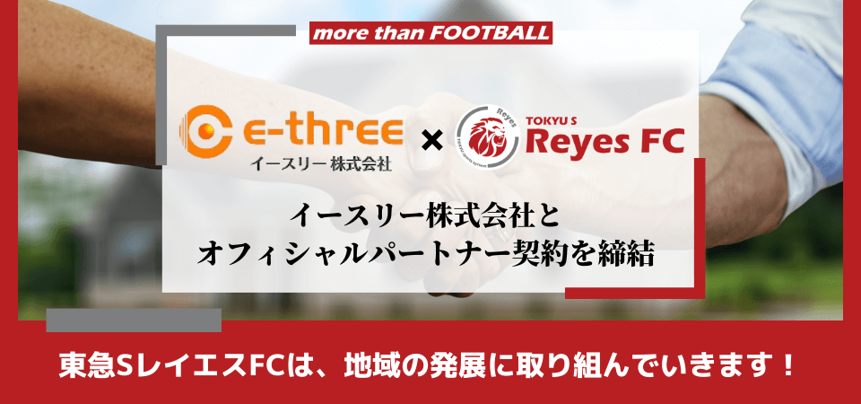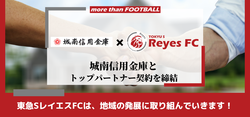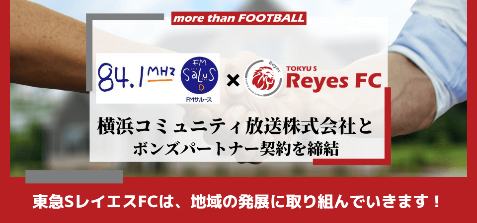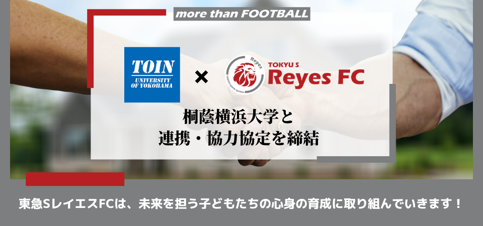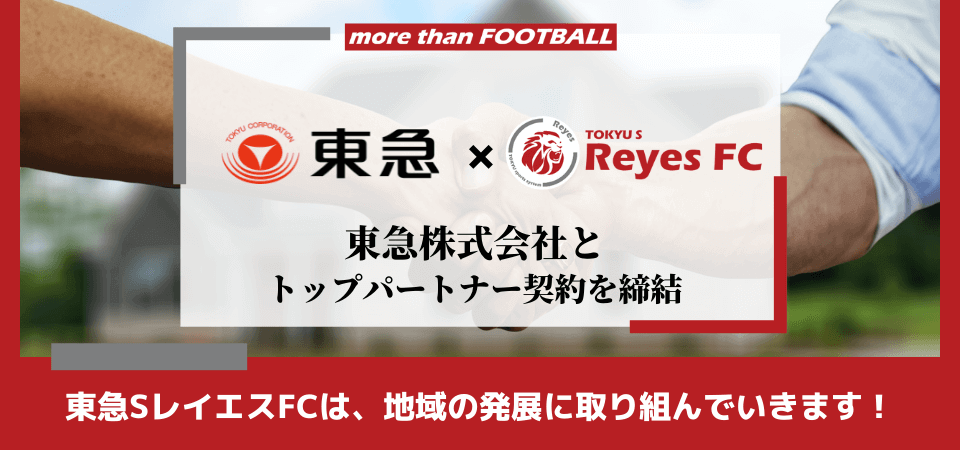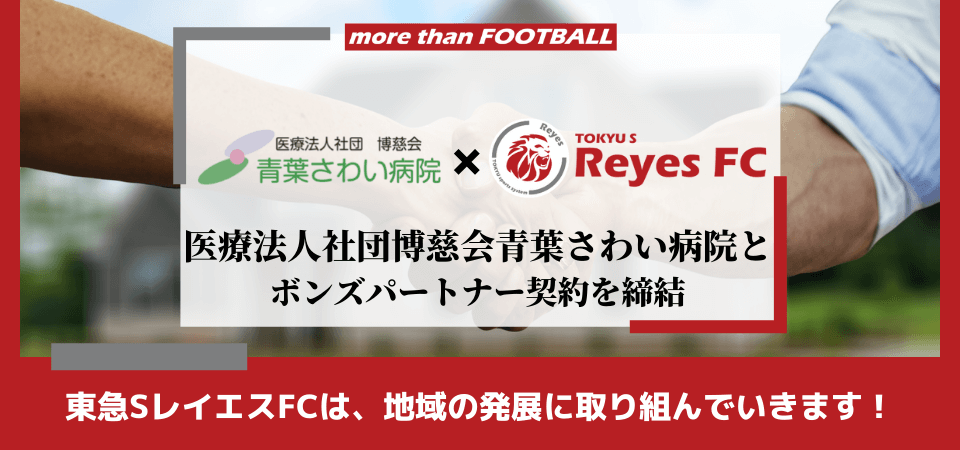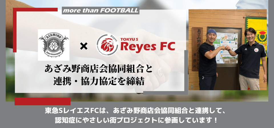 東急SレイエスFCは、あざみ野商店会協同組合との連携を強化しながら、地域関連事業や地域社会貢献活動に取り組み、活動拠点を置く横浜市青葉区より新たな価値を共創し、レイエスに関わる全ての皆様へ、よろこびがつなぐ世界の実現へ向け、志を共にしながら歩んで参ります。