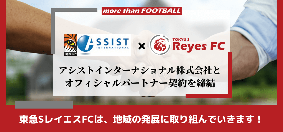 「人とスポーツとの出会い」という想いから生涯スポーツを豊かにしていくサポートを人工芝のハード面から支えるアシストインターナショナル株式会社様とのパートナーシップにより、クラブが掲げる健康づくりの体現を歩めることに嬉しく思います。
