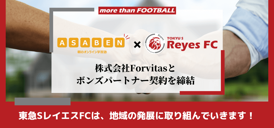 「チームの勝利のために自らの特徴を武器として発揮できる、能動的知性を持った選手。」を理想の選手に掲げる当クラブと、「自身が自ら目標を立て、そこへ向かって正しい努力をすることで、成長し続けることができる人材。」を目指し教育事業に取り組んでいる、株式会社Forvitas様とのパートナーシップにより、学業の面においても成長をお届け出来ることを嬉しく思います。