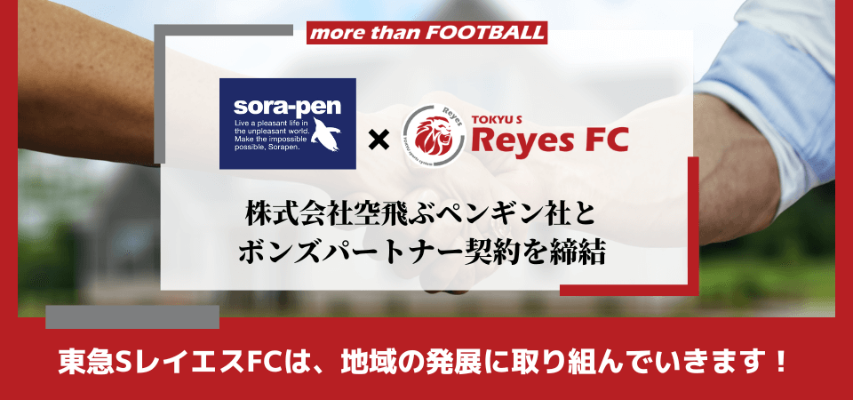 様々なメディアにも取り上げられ、偏見にとらわれず自由な発想で新しいものを創り出し、より多くの驚きや喜びを与えたいという想いで様々なイベントや企画、商品を開発されている空飛ぶペンギン社様とパートナーを組めることは、今よりもそれよりもというmore thanの世界観を作っていきたいという東急SレイエスFCの想いとも一致し、大変嬉しく思います。