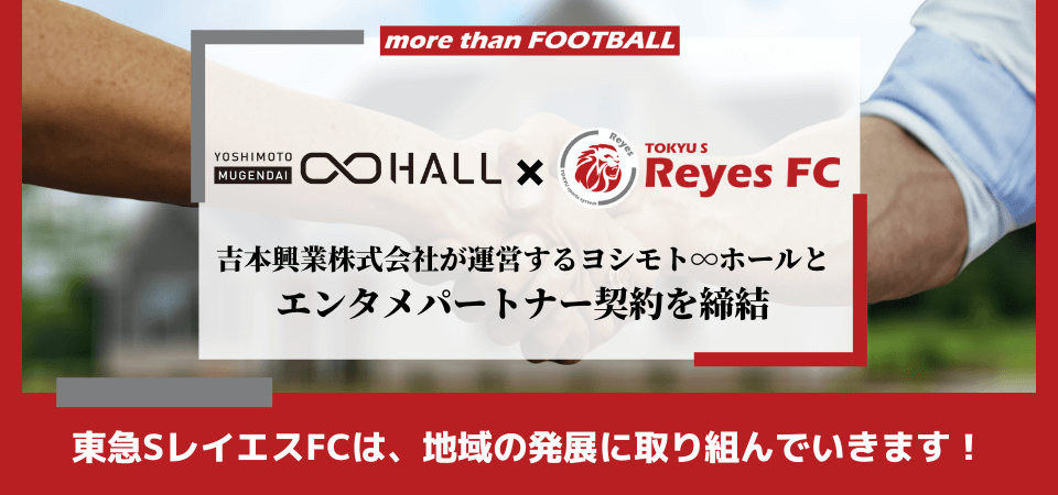 両者のフィールドは異なりますが、ヨシモト∞ホール様と共にクラブのフィロソフィーに掲げる“関わる方全てに成長をお届けする”ことを体現出来ることを嬉しく思います。