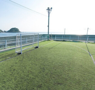 宿舎敷地内の人工芝フットサルコートでトレーニングを行います。