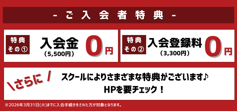 ※各スクールにて入会キャンペーン内容が異なります。