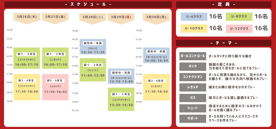 新年度へ向けて、東急Sレイエス フットボールスクールでは『春の短期スクール』を開催いたします。