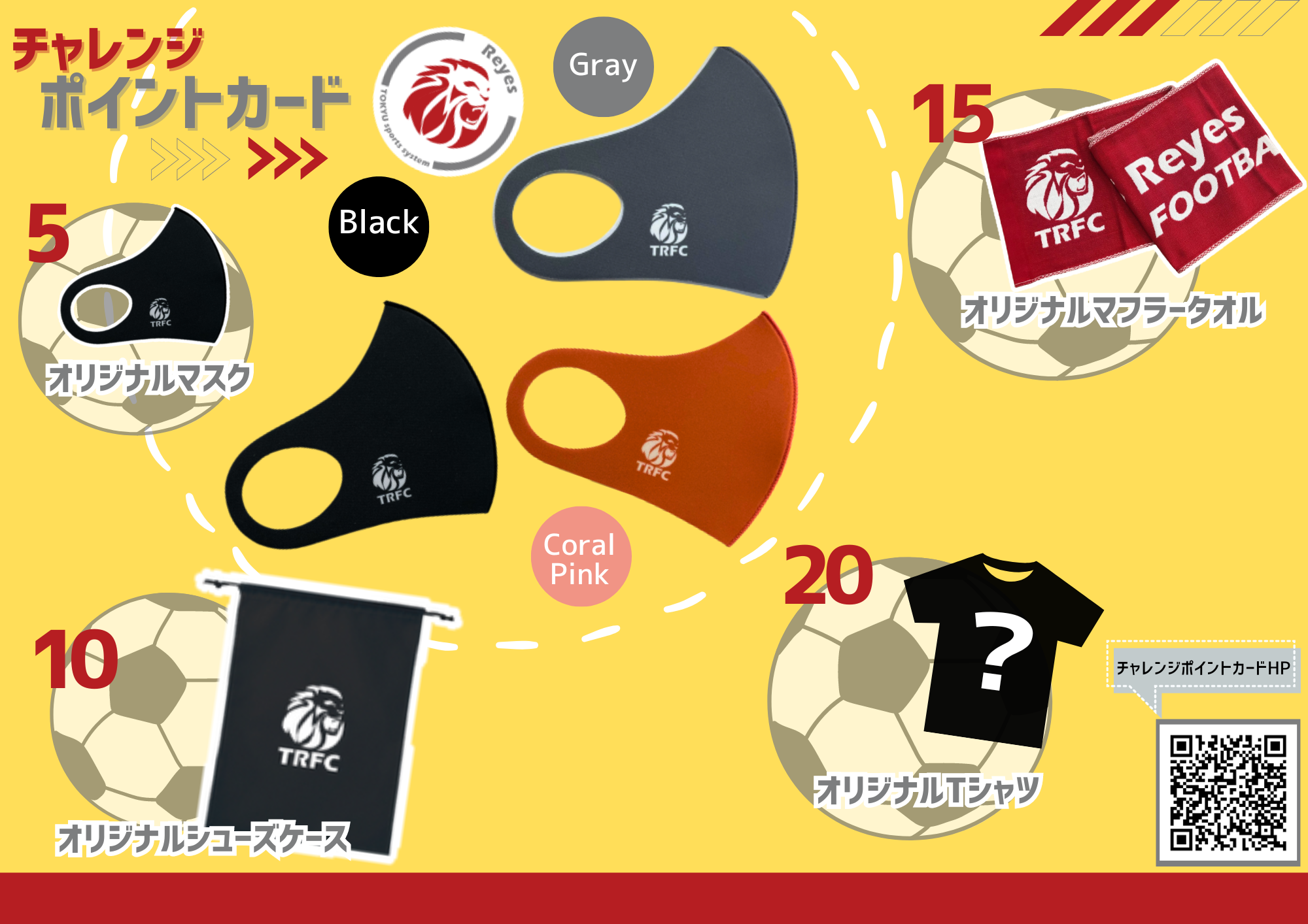 東急Sレイエス フットボールスクールでは、挑戦する子ども達を応援する『チャレンジポイントカード』を期間限定で配布いたします。