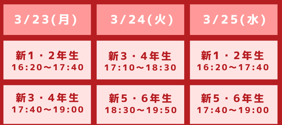 ・スクールが休業日の場合はスクールお問い合わせフォームよりお問合せください。
