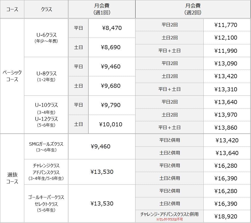 1レッスン単位で同クラスの他曜日・一学年上が所属するクラスが空いていればご参加いただける制度です。