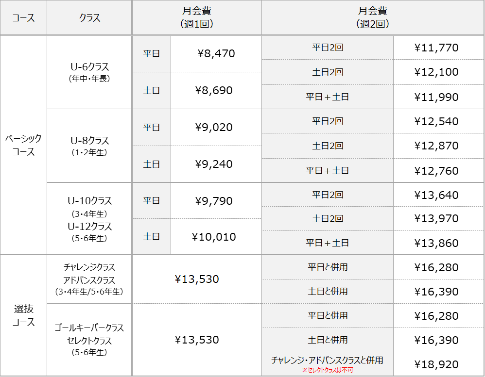 ただし、スクールの実施が困難(荒天、警報など)とコーチが判断した場合は、中止とさせていただきます。