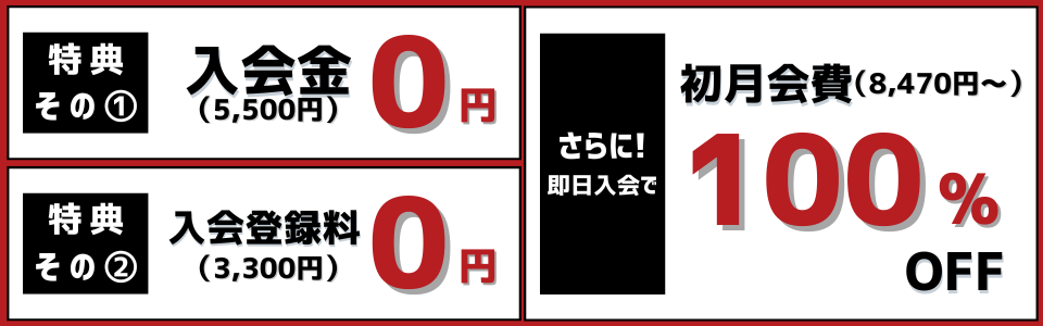 退会後、3ヶ月以内であれば入会金・入会登録料は発生いたしませんが、キャンペーンは適用になりません。