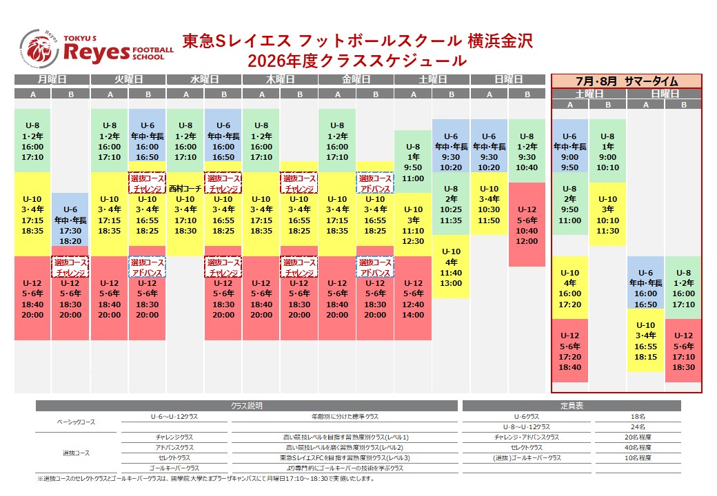 実施判断はスクール開始1時間前に決定いたしますので、WEBサイトよりご確認ください。