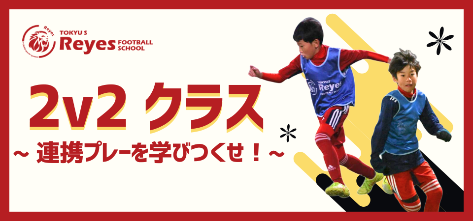 「2v2クラス」は、サッカーの試合で実際に起こる“味方との連携プレー”を、2対2の形式で練習するイベントです。
