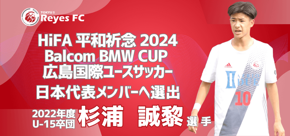 2022年度のレイエス サッカーU-15 卒団生である杉浦 誠黎選手が「HiFA 平和祈念 2024 Balcom BMW CUP 広島国際ユースサッカー」に参加するU-17日本代表メンバーに選出されました。