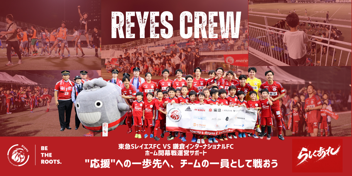 レイエスTOPチームのホーム開幕戦(vs.鎌倉インターナショナルFC)のゲーム運営サポートをしながら、熱い気持ちを持って、一緒に戦ってくれるクルーを募集します!