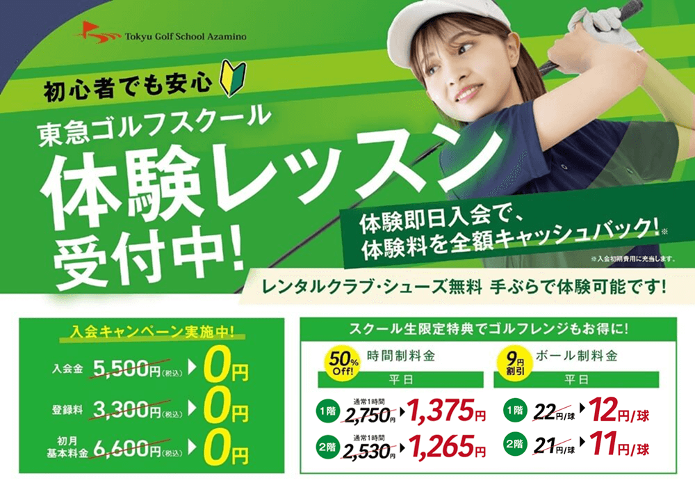 東急ゴルフスクールあざみ野では、PGA・LPGA認定のティーチングプロが、個々のレベルに合わせた丁寧な個人指導を行っておりますので、キャリアの長い経験者から初心者の方まで、どのレベルの方でも他の生徒さんに気を遣うことなく安心してレッスンを受講していただけます。体験レッスンも受付中ですのでお気軽にご参加ください。