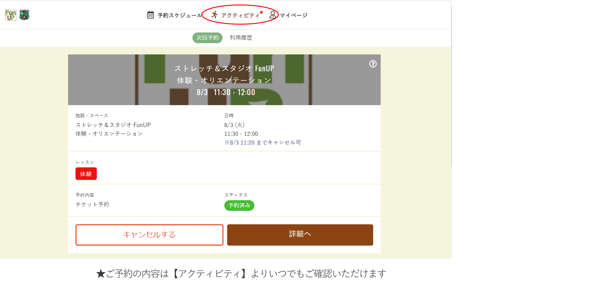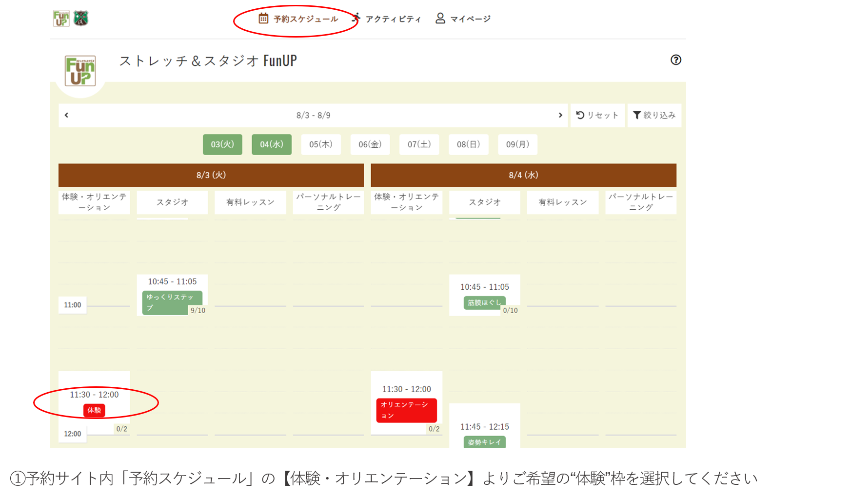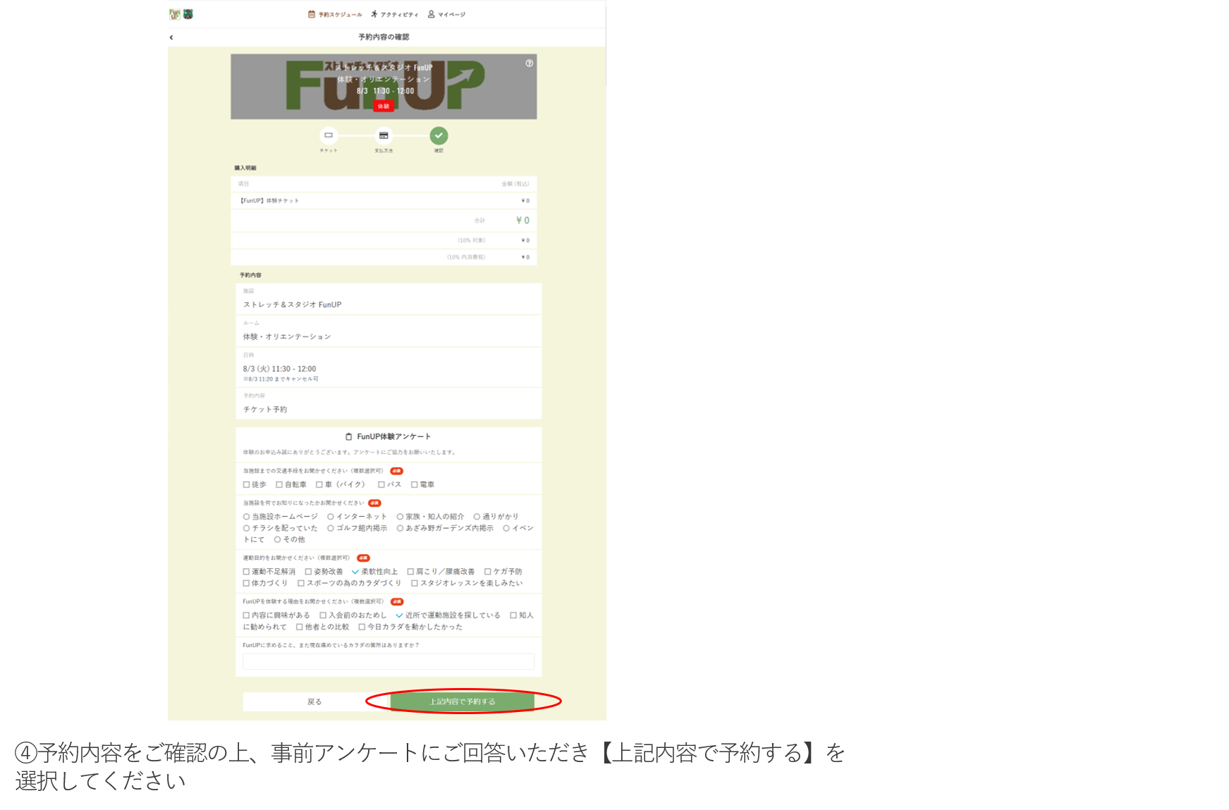 ストレッチ&スタジオFunUPの施設利用体験には、予約サイトへの登録(無料)が必要です。