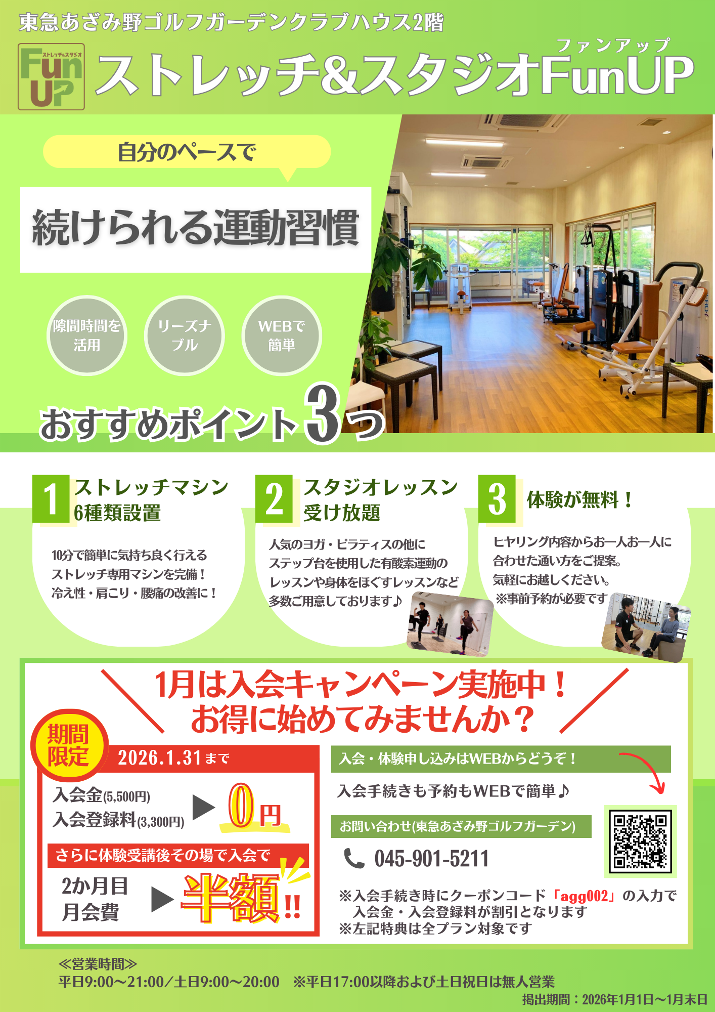 1月はお得な入会キャンペーンを実施いたしますので、ぜひこの機会に皆様のご利用をお待ちしております。
