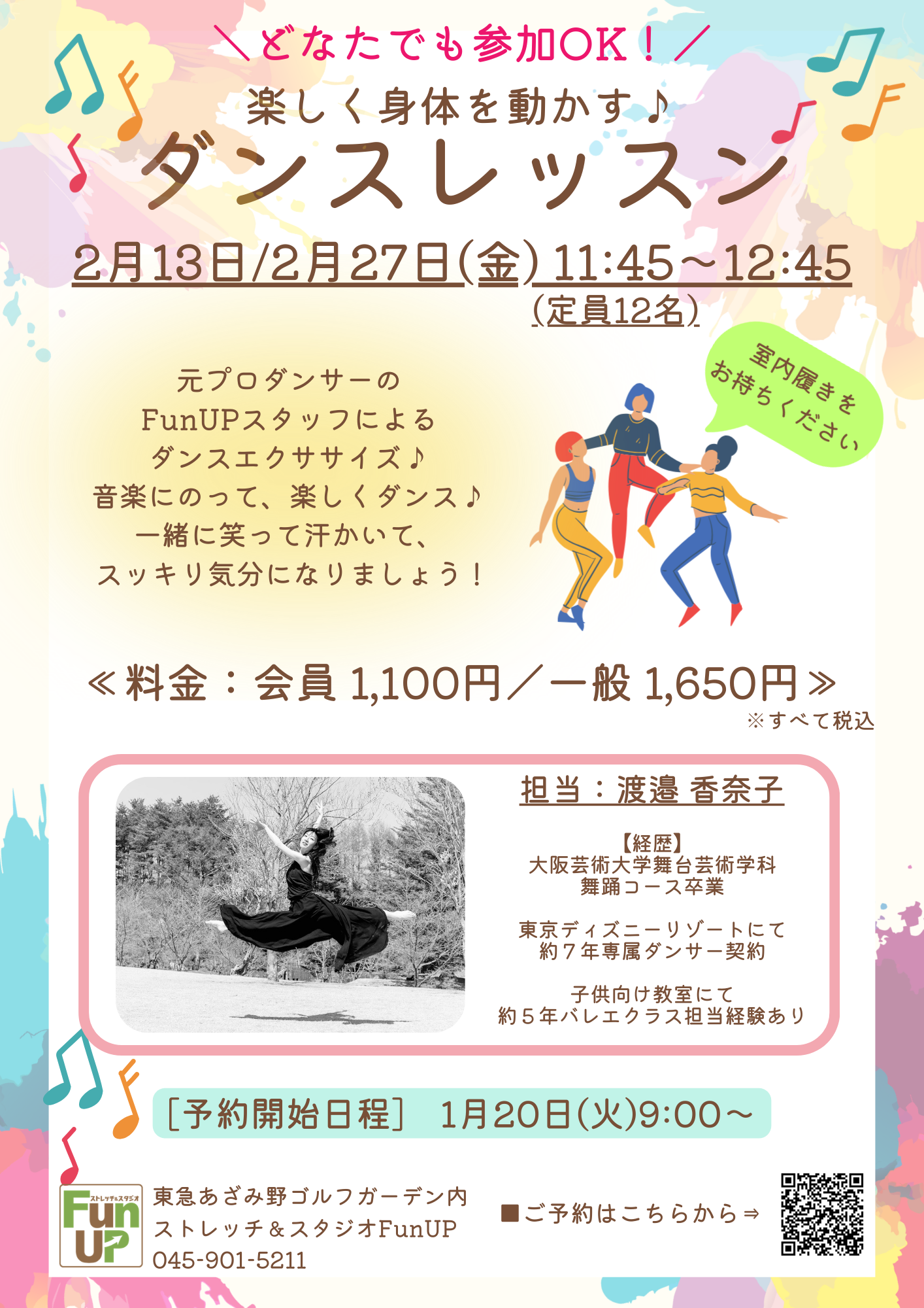 元プロダンサーのスタッフが、どなたでも気軽に楽しめるダンスレッスンを開催いたします。