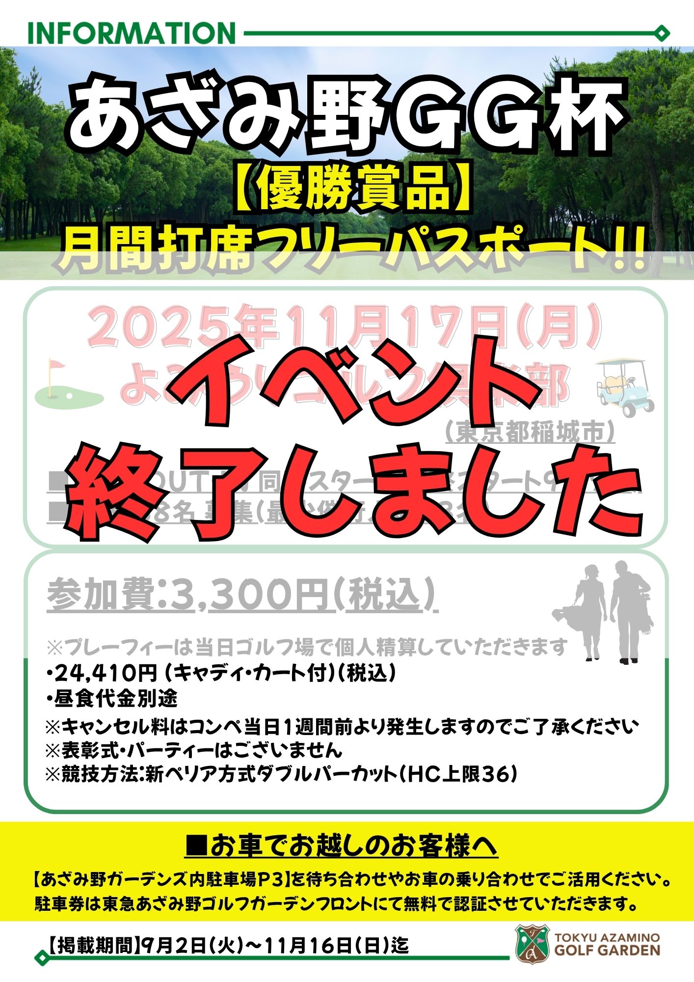 各賞品は後日、東急あざみ野ゴルフガーデンでお渡しさせていただきます。
