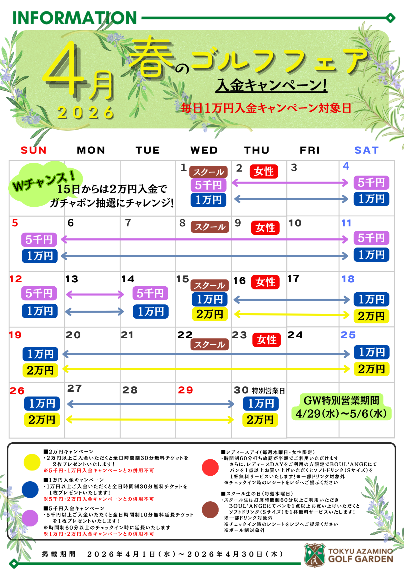 - いつも東急あざみ野ゴルフガーデンをご利用いただき誠にありがとうございます。