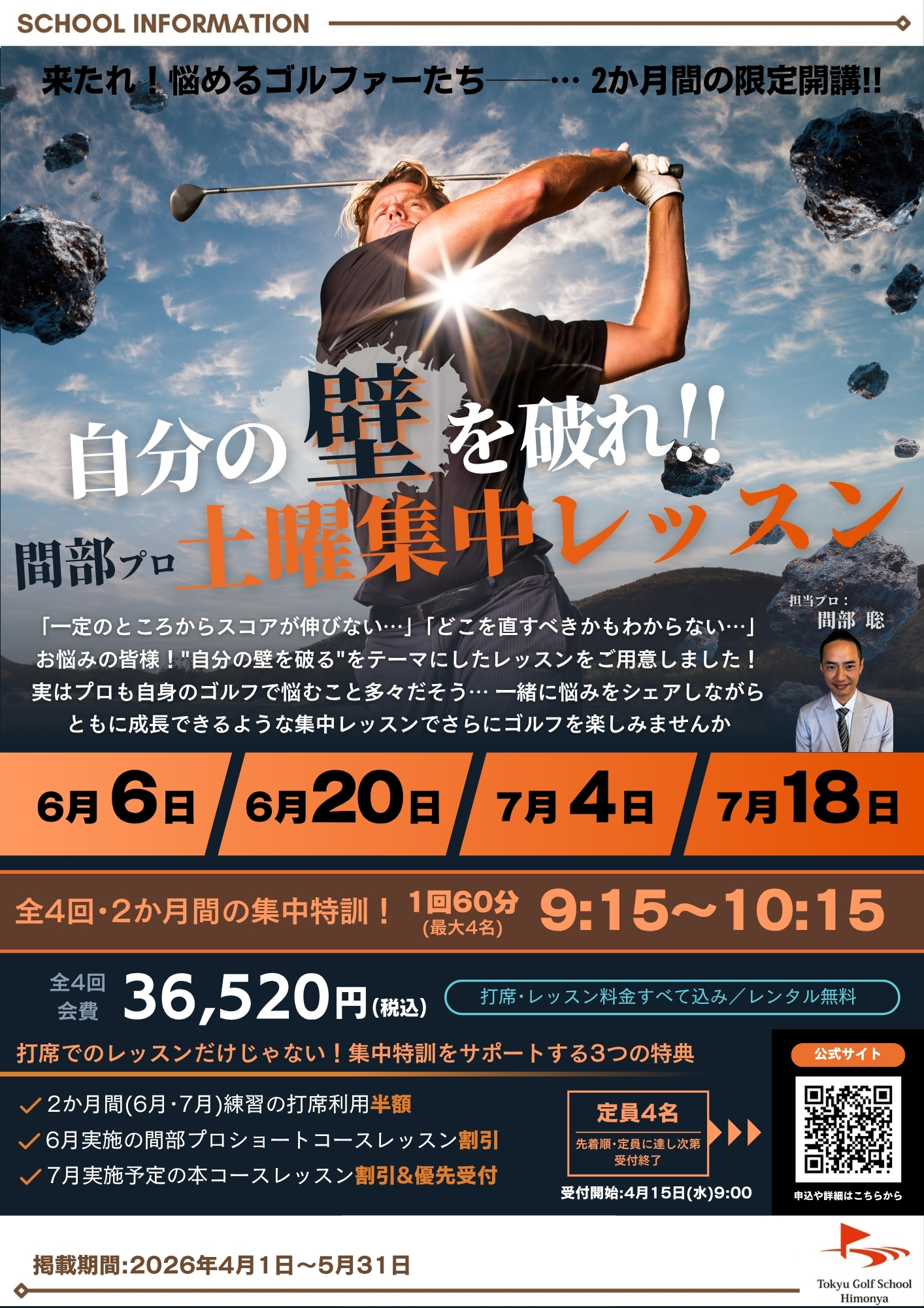 6月・7月の2か月限定開講!間部プロによる限定レッスンが登場!
