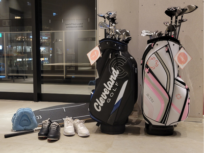 クラブ・シューズを各種ご用意。初めてご利用されるお客様でも追加料金無しで手ぶらでお越しいただけます。練習器具もご自由にご利用いただけます。
