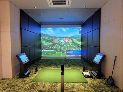 左右兼用レンジを備えた個室。GOLFZONシミュレーターの最高機種『VISION+』を設置。富士クラシック、川奈ホテルGCなどの有名国内コースの他、セントアンドリュース、ペブルビーチなどワールドクラスコースを含む190ヶ所以上のコースを圧倒的なグラフィックで体験することが出来ます。最大4名様でご利用いただけるのでご家族・ご友人とお楽しみいただけます。