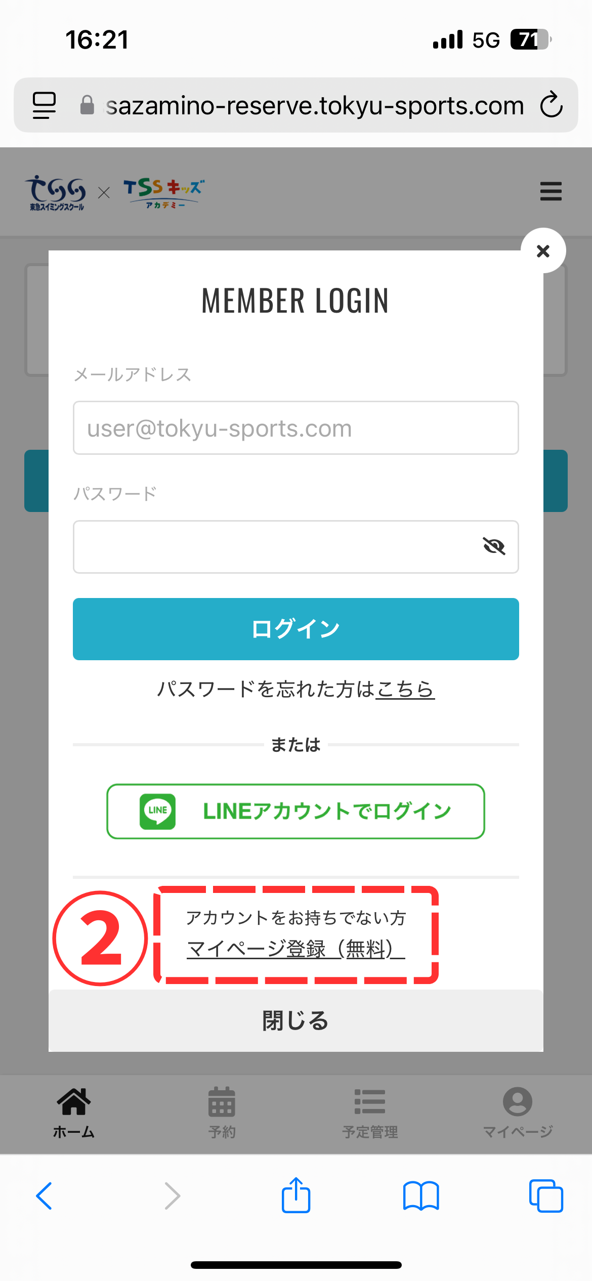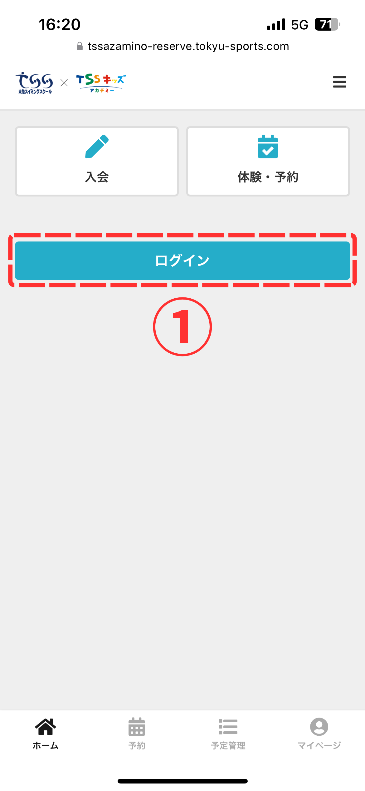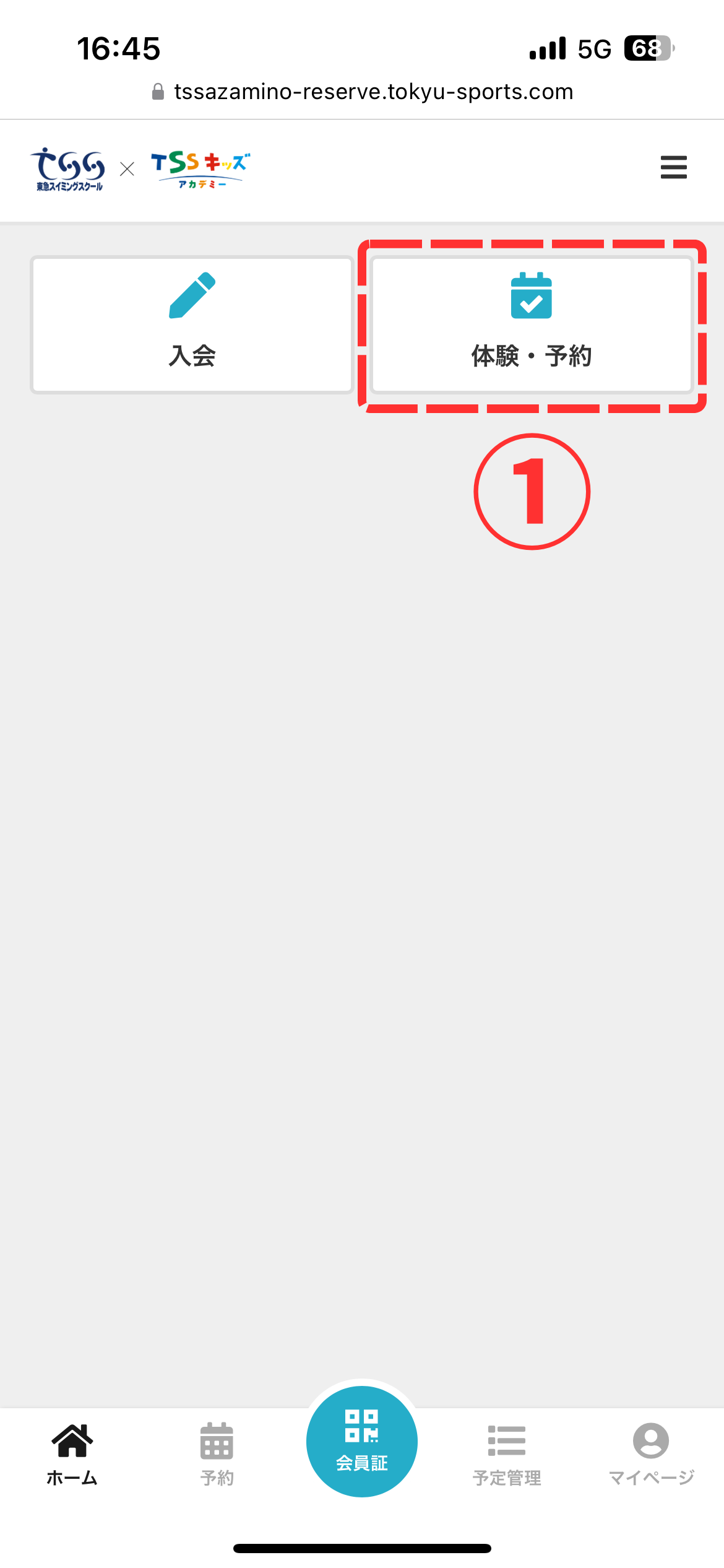 ページ下部のボタンより東急スイミングスクールあざみ野のシステムページ(hacomono)へ登録・ログインしていただいてのお申込みとなります。