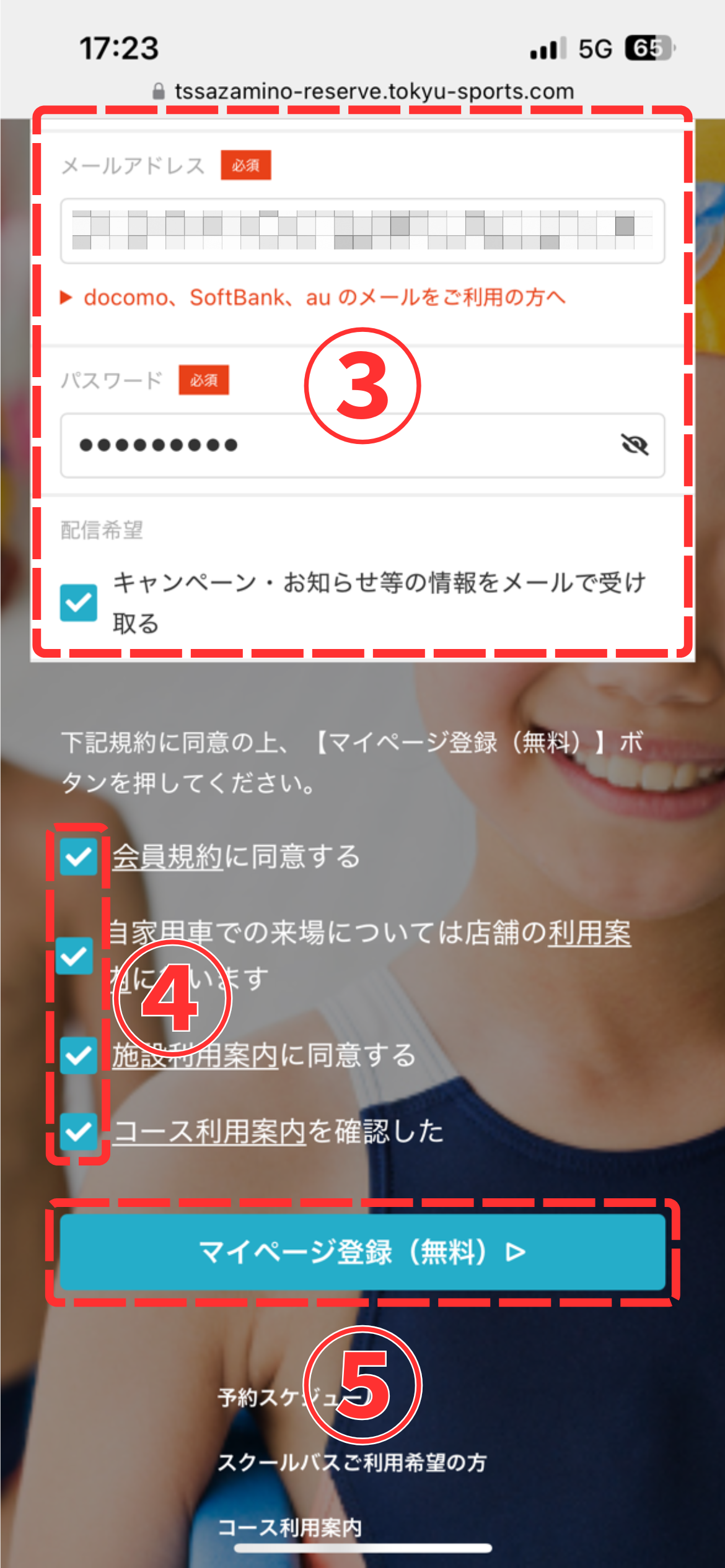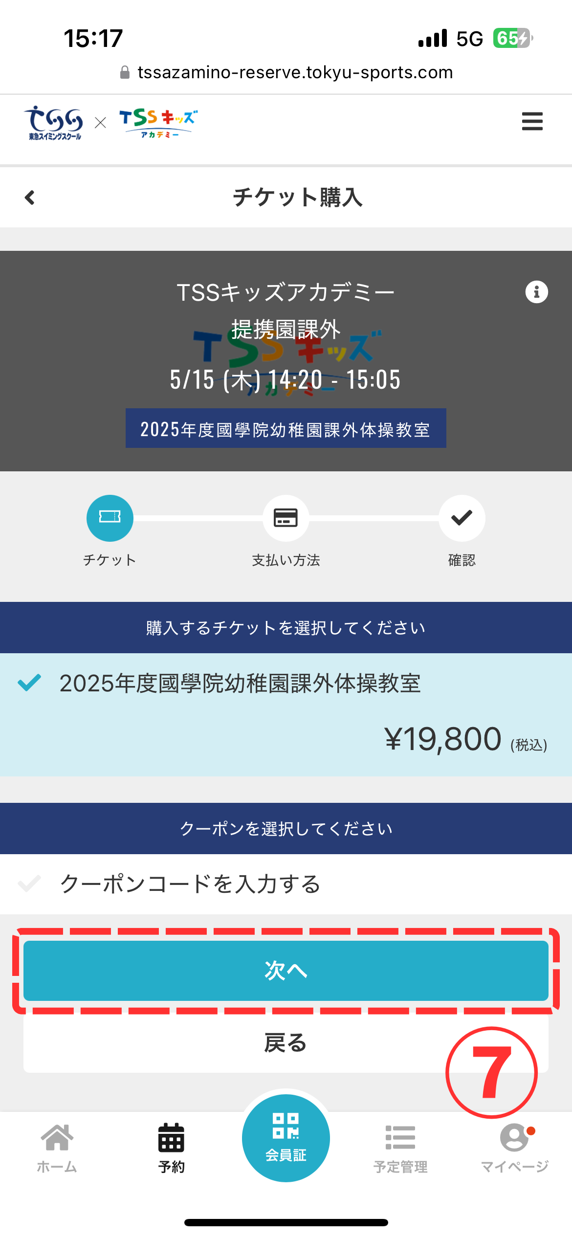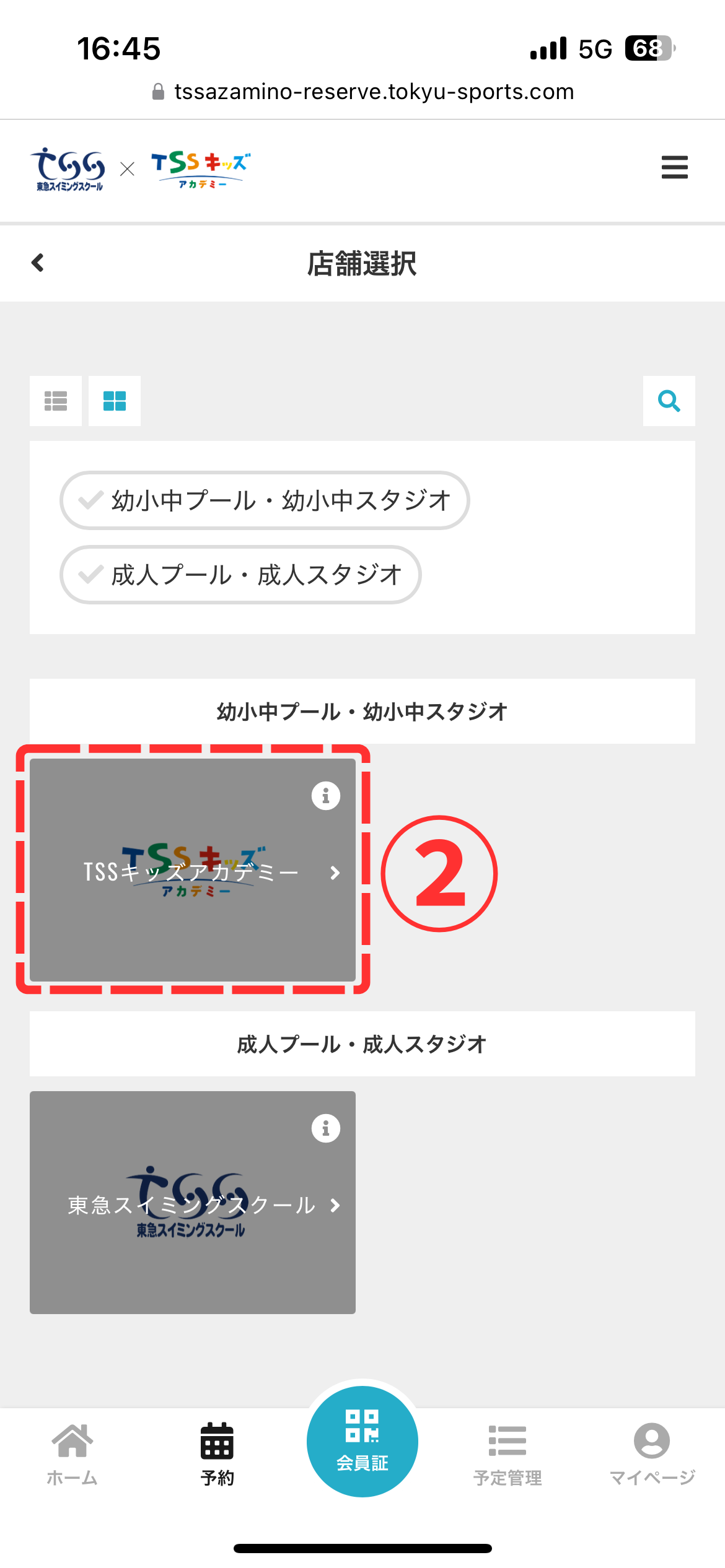ページ下部のボタンより東急スイミングスクールあざみ野のシステムページ(hacomono)へ登録・ログインしていただいてのお申込みとなります。