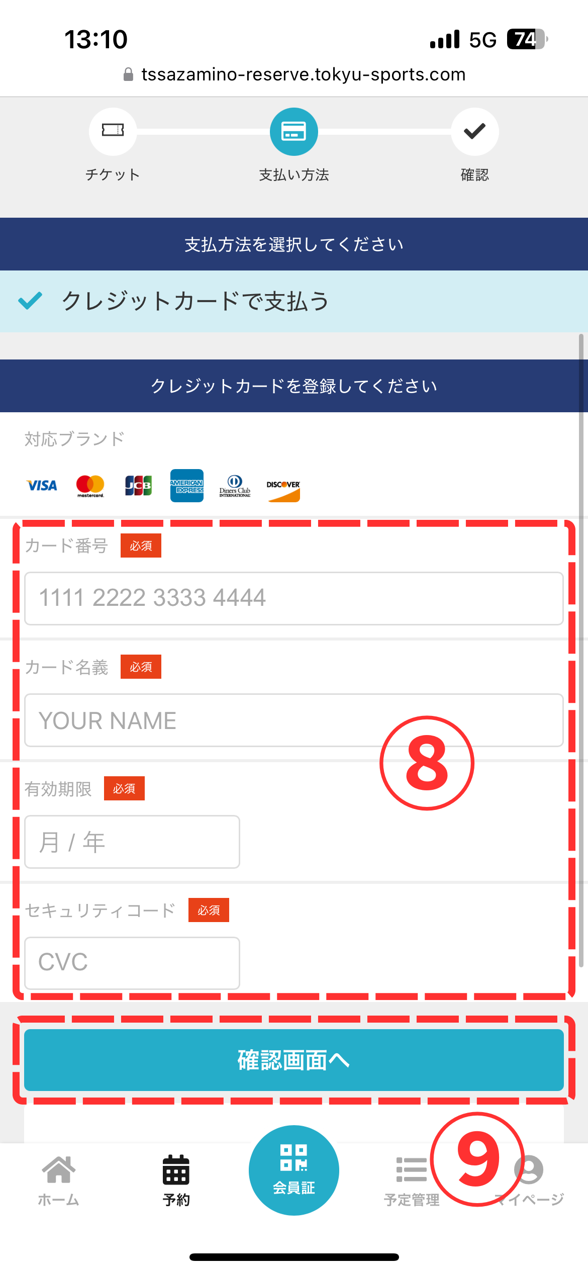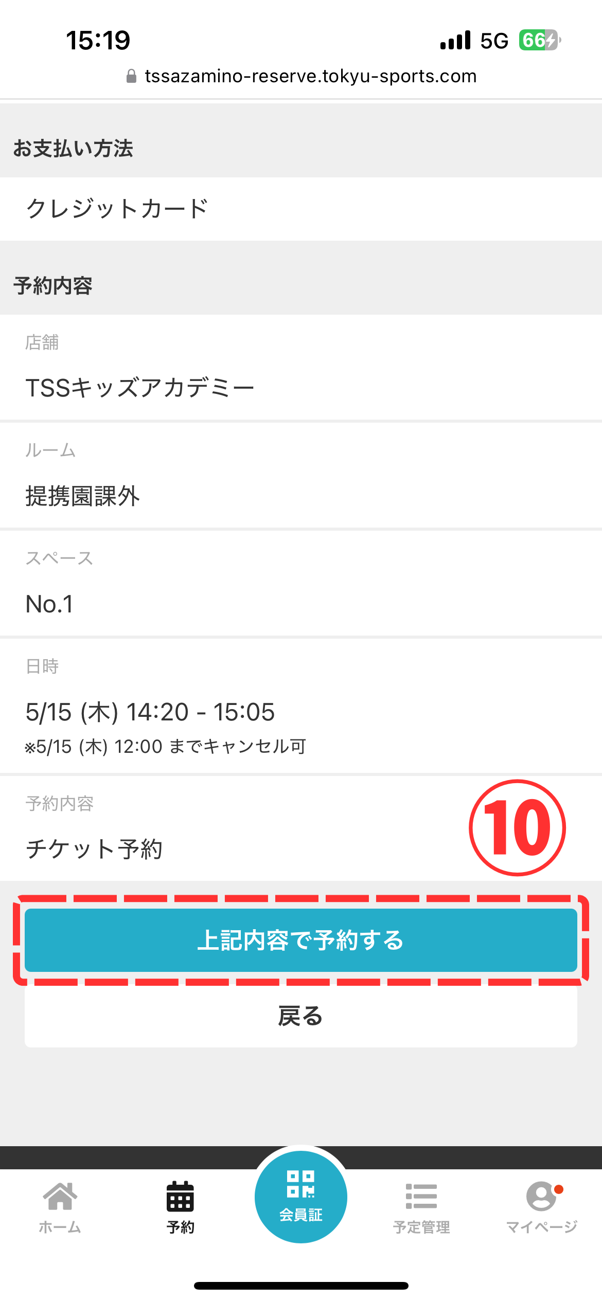 10.申込み内容を確認し、「上記内容で予約する」をタップ
