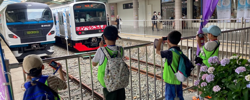 普段は立ち入ることのできない車両基地に潜入して、工場の設備や停車している電車を見学します。