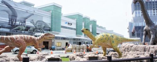 福井駅に到着するとすぐに恐竜たちがお出迎え!